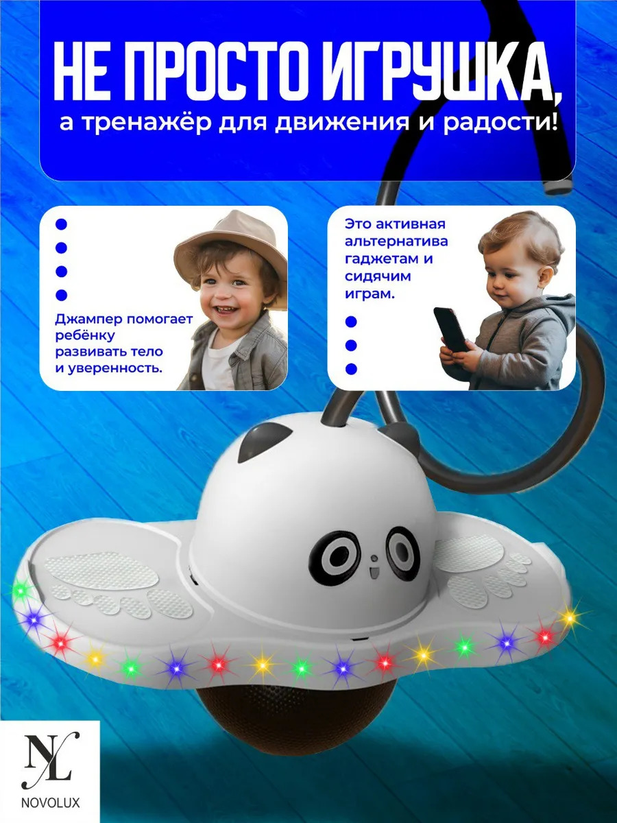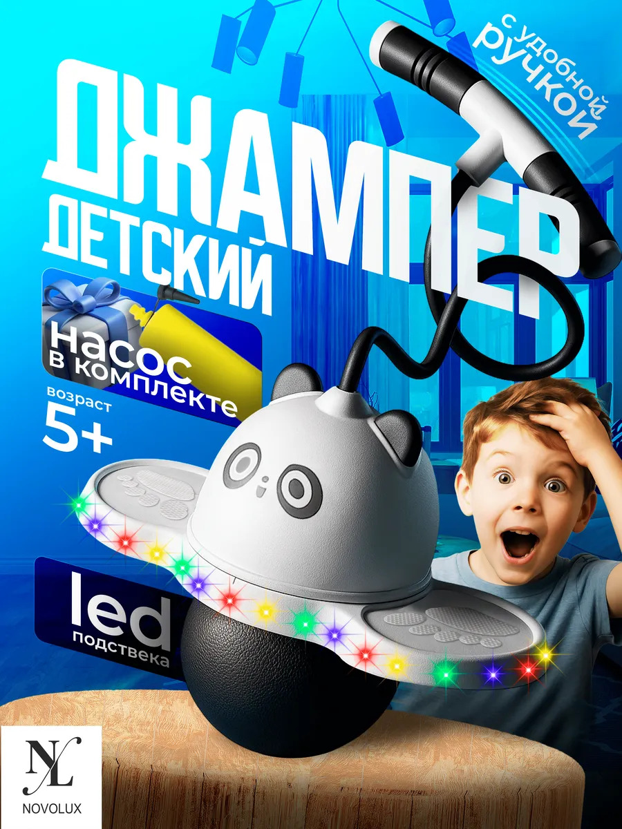 Прыгалка подходит для игр дома или на улице: как в парке, так и во дворе. Компактный и легкий, не займет много места при хранении. Яркие лампочки - больше развлечения!